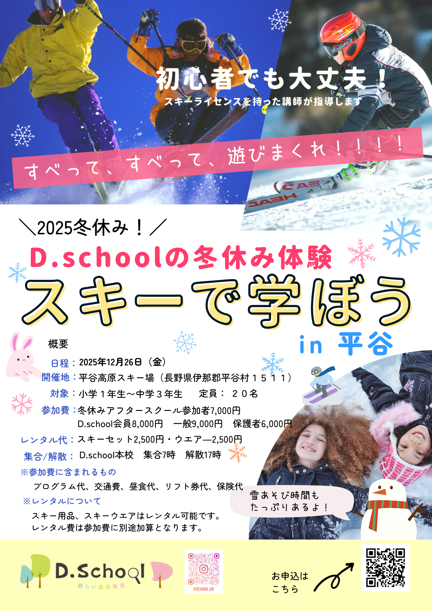 冬休みスキー体験 日程:12月26日(金曜日)時間:7時〜17時(Dス ...